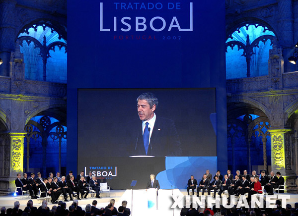 簽字儀式在被聯(lián)合國教科文組織列為世界文化遺產(chǎn)的熱羅尼莫斯修道院舉行。歐盟輪值主席國葡萄牙總理蘇格拉底、歐盟委員會主席巴羅佐和歐洲議會議長珀特林先后發(fā)表簡短講話。