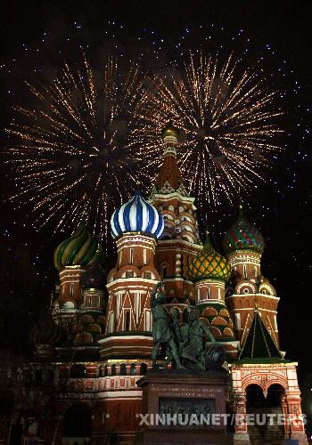 1月1日,禮花綻放在俄羅斯首都莫斯科紅場上空。隨著新年鐘聲的敲響,在不同時區的世界各國陸續辭舊迎新,走進2008年。 新華社記者沈伯韓攝