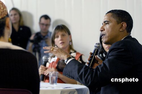一月十七日,美國總統(tǒng)參選人奧巴馬在舊金山與四位不同族裔的年輕單身母親談健保和稅務(wù)政策,爭取選票。 中新社發(fā) 陳鋼 攝