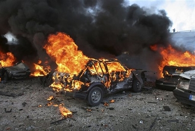 2007年6月,黎巴嫩國會議員瓦里德?埃多遭遇汽車炸彈襲擊喪生;9月,黎巴嫩議員加奈姆被暗殺;12月,黎巴嫩軍方將領哈吉(Franois el-Hajj)在汽車炸彈襲擊中遇難。一個多星期以前,貝魯特發(fā)生的一起汽車炸彈襲擊事件造成美國駐黎巴嫩大使館的一輛汽車在爆炸中受損,20多名平民傷亡。 |