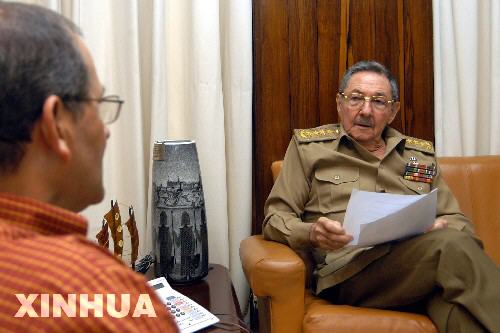 2006年8月17日,勞爾·卡斯特羅(右)正在接受古巴共產黨中央機關報《格拉瑪報》的專訪。他在接受采訪時說,古巴領導人卡斯特羅的身體正“逐步令人滿意地恢復”。 新華社發
