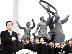 至于南北關系,李明博表示,將以實用主義的尺度來解決對北問題。他說:“只要朝鮮選擇棄核、開放的道路,南北關系就會展開一個新的局面。我們將與國際社會合作幫助朝鮮居民在10年內達到年收入3000美元……南北政治領導人應共同研究怎樣才能讓7000萬國民富裕起來、怎樣才能相互尊重,并開啟統一的大門……機會就在我們面前。”