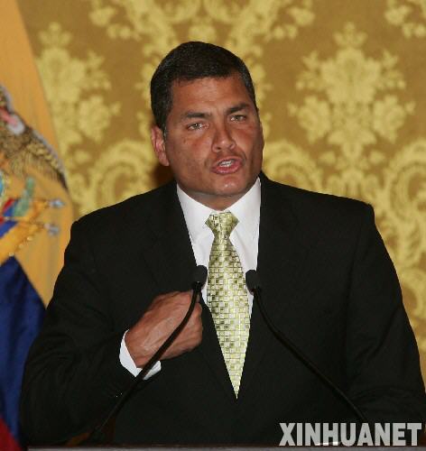 3月2日,厄瓜多爾總統科雷亞在首都基多的總統府宣布驅逐哥倫比亞駐厄大使。同日,厄瓜多爾外交部發表聲明說,為抗議哥倫比亞軍隊1日凌晨在厄瓜多爾境內展開軍事行動打擊哥最大反政府游擊隊組織“哥倫比亞革命武裝力量”,厄將“無限期”召回駐哥倫比亞大使。 新華社發(阿馬斯攝)