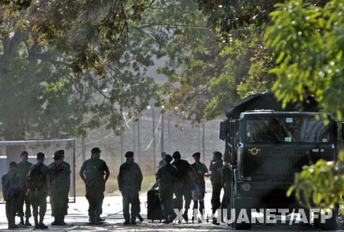 3月2日,在委內瑞拉首都加拉加斯以西約100公里的馬拉凱,委內瑞拉士兵駐扎在營地內。當天,委內瑞拉總統烏戈·查韋斯下令關閉委內瑞拉駐哥倫比亞使館,撤出委內瑞拉駐哥倫比亞使館的外交人員,并派兵前往委內瑞拉與哥倫比亞兩國邊境。 新華社/法新