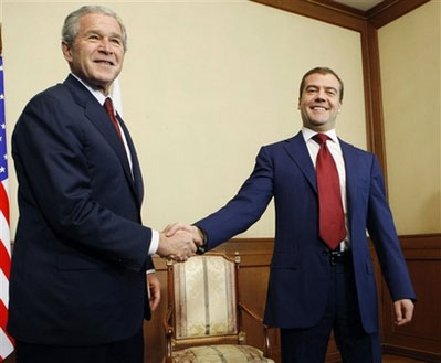 據香港《文匯報》報道,布什贊揚普京誠實坦白,會說出心中所想。普京下月就會卸任總統,由梅德韋杰夫接任。布什與梅氏首次會面后,贊賞對方為人直接,指出梅氏給他的印象非常正面,是個聰明人,很期待與他合作。梅氏表示會跟隨普京的足跡,尋求與美國發展更深厚的關系。峰會結束,布什昨午已啟程返美。