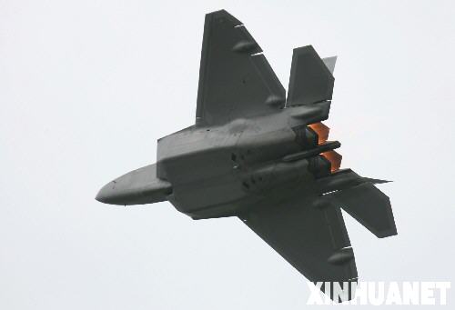 7月14日,在英國小鎮(zhèn)法恩伯勒舉行的國際航展上,美軍F22戰(zhàn)斗機(jī)進(jìn)行飛行表演。當(dāng)天,英國2008法恩伯勒國際航空展(又譯范堡羅航空展)拉開帷幕,航展將持續(xù)到20日,包括當(dāng)今世界最大的民航客機(jī)——空中客車A380在內(nèi)的最新民用和軍用飛機(jī)以及其它航空科技成果將在這里展出。新華社記者謝秀棟攝