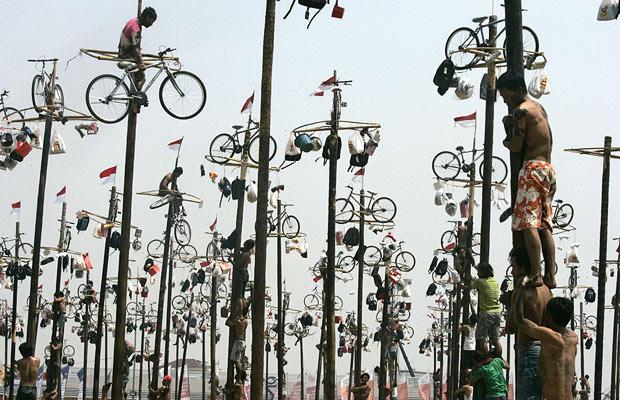 中新網8月20日電 綜合報道,印度尼西亞17日在首都雅加達舉行獨立日慶典,印尼總統蘇西洛將國旗遞給一名旗手,由儀仗隊員升起印尼國旗。此外,印尼當天還舉行多種慶典活動,慶祝獨立63周年。