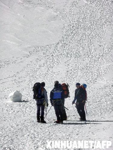 8月24日,在法國東部沙莫尼山谷勃朗峰法國一側的海拔3800米處,救援人員搜救雪崩事故的失蹤者。 新華社/法新