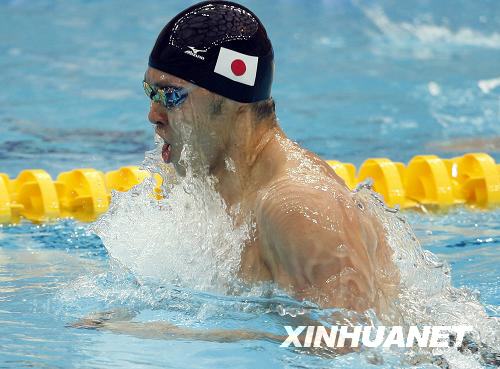 8月14日,日本選手北島康介在男子200米蛙泳決賽中,他以2分07秒64的成績奪得金牌,并打破奧運會紀錄。當日,北京奧運會游泳比賽在國家游泳中心“水立方”繼續舉行。 新華社記者費茂華攝