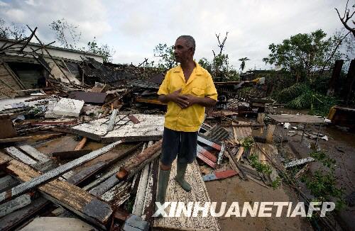 8月31日,在古巴首都哈瓦那以西100公里處的比那爾德里奧省,一名居民看著自家被颶風(fēng)“古斯塔夫”毀壞的房屋。“古斯塔夫”颶風(fēng)8月30日凌晨開始襲擊古巴西部。颶風(fēng)造成了嚴(yán)重的經(jīng)濟(jì)損失,大量房屋被毀壞,供電、供水、供氣系統(tǒng)和通信系統(tǒng)中斷。這是近半個(gè)世紀(jì)來這一地區(qū)遭受的最嚴(yán)重的自然災(zāi)害。31日,颶風(fēng)“古斯塔夫”開始減弱。 新華社/法新