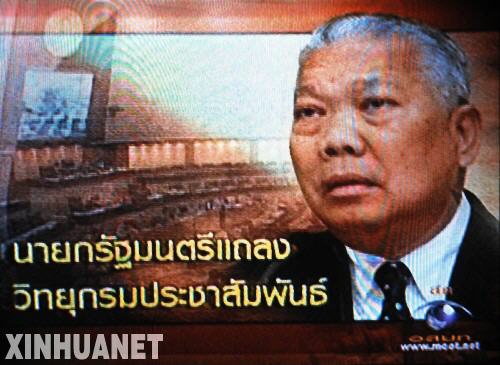 9月4日,泰國總理沙馬在泰國廣播電臺發(fā)表講話說,自己將維護國家民主,絕不會迫于反政府人士的壓力而辭職。 新華社記者凌朔攝