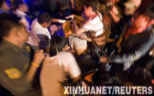 9月2日,在泰國首都曼谷,一名反政府示威者受傷后接受臨時治療。數(shù)千名支持政府和反政府示威者2日凌晨在首都曼谷發(fā)生大規(guī)模激烈沖突。泰國總理沙馬當(dāng)日宣布曼谷地區(qū)進入緊急狀態(tài)。 新華社/路透 |