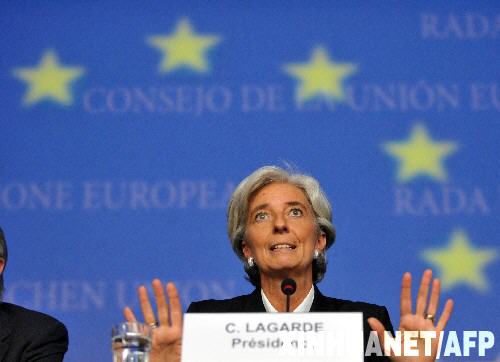 10月7日,在盧森堡,歐盟輪值主席國法國經濟、財政與就業部長克里斯蒂娜·拉加德在歐盟27國財長月度例會結束后召開新聞發布會。歐盟成員國財政部長當日同意大幅提高各國對儲戶存款的最低擔保額度,以幫助穩定金融市場和保護儲戶利益。 新華社/法新 |