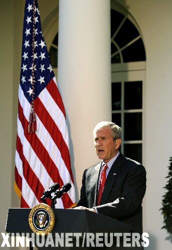 10月3日,美國總統(tǒng)布什在首都華盛頓就美國國會(huì)眾議院通過經(jīng)過修改的大規(guī)模金融救援方案發(fā)表講話。當(dāng)天,這份總額達(dá)7000億美元的金融救援方案由布什簽署生效。 新華社/路透