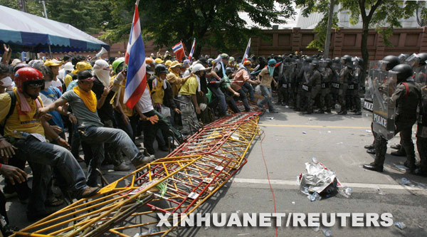 泰國警方7日與聚集在國會大院外和曼谷警察局前的反政府的人民民主聯盟(民盟)支持者發生沖突,警方多次使用催淚彈,而民盟支持者則用棍棒和石塊等還擊。