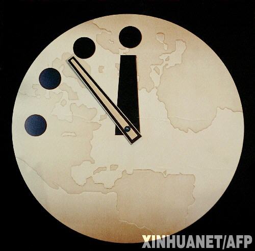 10月11日,美國(guó)國(guó)務(wù)院發(fā)言人麥科馬克宣布,由于美朝在朝鮮核設(shè)施驗(yàn)證問(wèn)題上達(dá)成協(xié)議,美國(guó)決定將朝鮮從所謂“支持恐怖主義國(guó)家”的名單中除名。這是2002年2月27日在美國(guó)芝加哥拍攝的“末日之鐘”,指針距離零點(diǎn)還有7分鐘。“末日之鐘”是由《原子科學(xué)家公報(bào)》于1947年設(shè)立的,指針距離零點(diǎn)的遠(yuǎn)近象征著世界距離毀滅的遠(yuǎn)近,其變化通常與核武器威脅相關(guān)。 新華社/法新