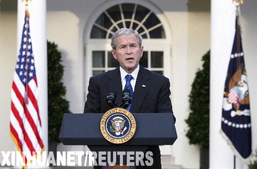 圖為10月14日,美國總統布什在華盛頓白宮發表講話。布什當天宣布,作為7000億美元救市計劃的具體舉措,政府將動用其中的2500億美元直接購買金融機構股份,以此促進金融市場恢復運轉。 新華社/路透