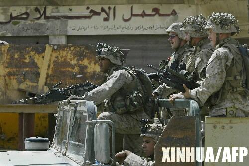資料圖片:幾名美國海軍陸戰隊士兵在伊拉克費盧杰街頭乘車巡邏。 新華社/法新