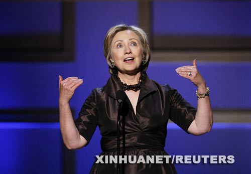 11月10日,美國民主黨國會參議員希拉里·克林頓在紐約“2008年度魅力女性”頒獎儀式上發表感言。當日,希拉里獲得由美國著名時尚雜志《魅力》評選的“年度魅力女性”稱號。 新華社/路透