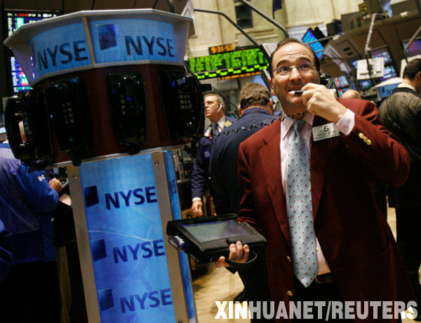 11月19日,交易員在美國紐約證券交易所內工作。由于投資者對美國經濟狀況的惡化以及汽車業巨頭的命運感到擔憂,紐約股市當天暴跌5%以上,創五年來新低,道瓊斯指數下跌超過400點,收于8000點以下。新華社/路透