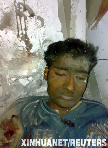 這是在印度孟買納里曼大樓內(nèi)使用手機拍攝的被擊斃的恐怖嫌疑分子的尸體(11月28日攝)。印度孟買26日晚間到27日凌晨至少有10處地點發(fā)生恐怖襲擊事件,至今已造成195人死亡、295人受傷。 新華社/路透