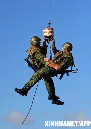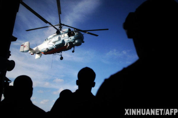 12月2日,在委內瑞拉境內的加勒比海域舉行的委俄海上聯(lián)合軍演中,委內瑞拉士兵觀看一架俄羅斯的卡默夫Ka-27蝸牛式反潛直升機。委內瑞拉和俄羅斯兩國于12月1日至3日在加勒比海舉行代號為“委俄2008”的聯(lián)合軍事演習。據(jù)悉,1600名俄羅斯軍人和700名委內瑞拉軍人參加演習。 新華社/法新