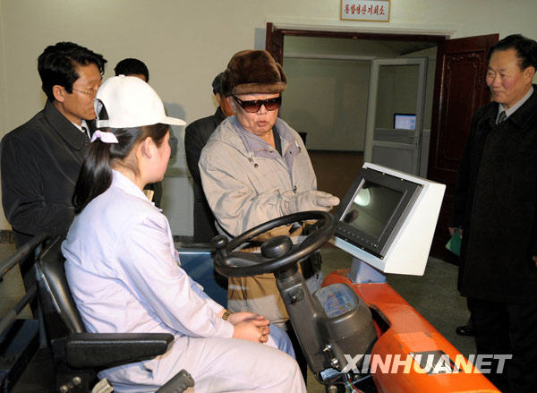 在這張朝中社12月19日播發(fā)的照片中,朝鮮最高領(lǐng)導(dǎo)人金正日在視察北部地區(qū)慈江道的一家機(jī)械工廠。新華社/朝中社