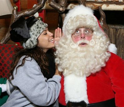 12月22日,一個(gè)女孩在美國(guó)加利福尼亞州的迪斯尼樂(lè)園和圣誕老人合影。(圖片來(lái)源:美聯(lián)社)