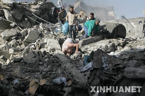 12月28日,在加沙城遭受以色列軍空襲的廢墟上,巴勒斯坦人在尋找幸存者。當(dāng)日,以軍繼續(xù)對加沙地帶實施空襲。以色列戰(zhàn)機(jī)從27日開始向加沙地帶發(fā)動大規(guī)模空襲,迄今已造成至少271人死亡、900多人受傷。加沙急救機(jī)構(gòu)稱,這是自1967年中東戰(zhàn)爭以來以軍襲擊所造成的巴勒斯坦人單日死亡人數(shù)最多的一次。新華社發(fā)
