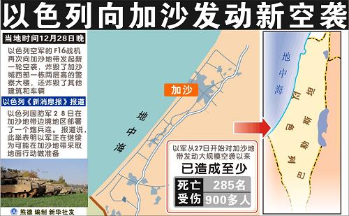 以軍27日中午開始對加沙地帶發(fā)動了幾十年來規(guī)模最大的空襲行動。截至28日,空襲已造成約300人死亡、1000多人受傷。