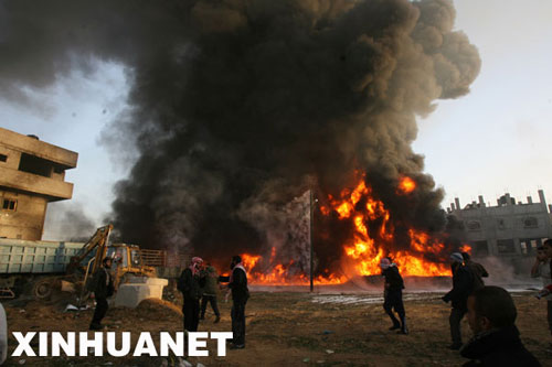 12月28日,加沙地帶南部拉法附近的儲油倉庫和藥品倉庫在以軍空襲中被擊中起火。新華社發