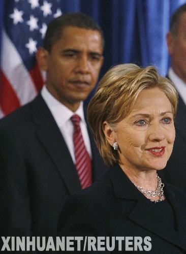 2008年12月1日,美國當選總統奧巴馬在芝加哥舉行新聞發布會,正式提名紐約州國會參議員、前第一夫人希拉里為新政府國務卿人選。 這是希拉里在當天舉行的新聞發布會上發表講話。 新華社/路透