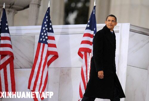 1月18日,在美國華盛頓,美國當選總統奧巴馬出席“我們是一家”音樂會。當天,美國當選總統奧巴馬抵達華盛頓后,來到林肯紀念堂出席音樂會,為一連4日的就職慶典拉開序幕。 新華社/法新
