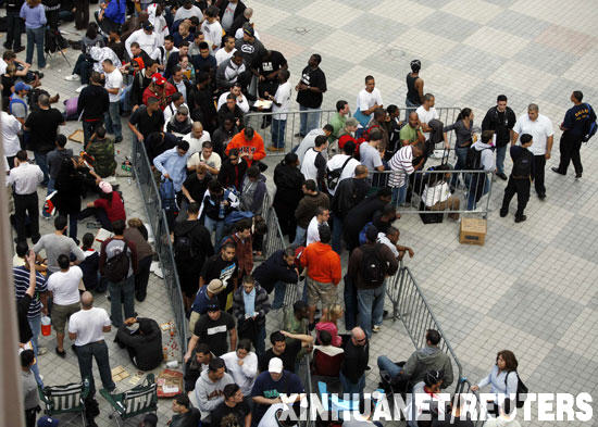 2月2日,在美國佛羅里達州的邁阿密,人們排隊等待提交應(yīng)聘消防員的申請表。邁阿密市準(zhǔn)備新增35名消防員,并宣布只接受前750人的求職申請表。數(shù)百名申請者為能提交申請表在戶外排隊露營了三夜。 新華社/路透