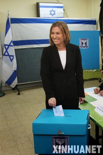 2月10日,以色列外長、前進(jìn)黨主席利夫尼在特拉維夫的一個(gè)投票站投票。新華社發(fā)