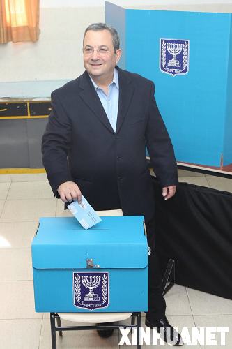 2月10日,以色列國防部長、工黨主席巴拉克在特拉維夫的一個(gè)投票站投票。新華社發(fā)