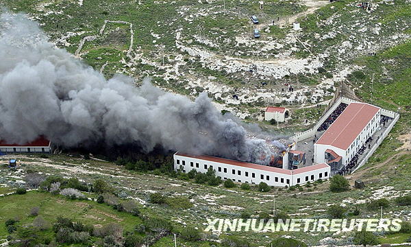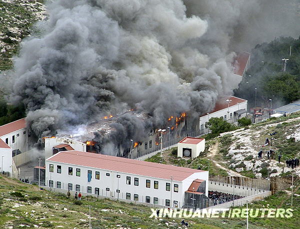 據(jù)當(dāng)?shù)鼐椒Q,當(dāng)天,一些被拘留在此的非法移民試圖逃跑失敗后,便縱火焚燒該收容中心,造成多人受傷。新華社/路透
