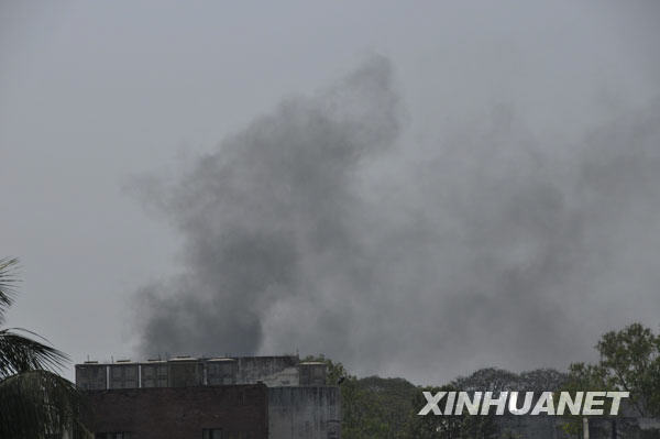 2月25日,孟加拉國準軍事組織“孟加拉國步槍隊”位于首都達卡的總部上空升起濃煙。新華社發(扎曼攝)