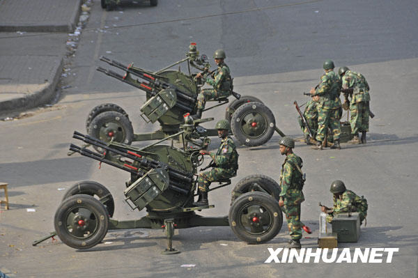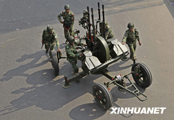 2月25日,孟加拉國軍人在首都達卡部署防空武器。新華社發(扎曼攝)