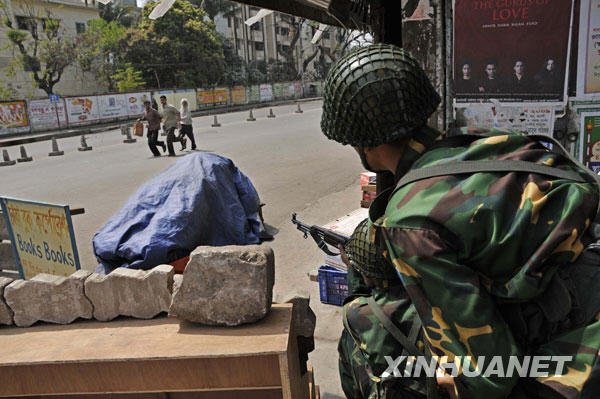 2月25日,孟加拉國軍人在首都達卡警戒。新華社發(扎曼攝)