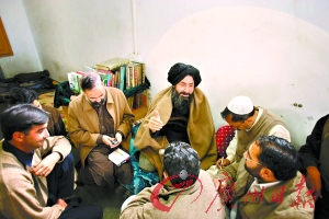 3月1日,塔利班發言人阿米爾·伊扎特(中)接受媒體采訪。近日,美國總統奧巴馬表示愿意向塔利班“溫和派”打開談判的大門。