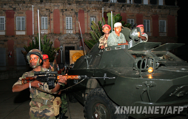 3月16日,馬達加斯加武裝部隊占領位于塔那那利佛市的一處總統府。當晚,馬達加斯加武裝部隊占領了位于塔那那利佛市中心的總統府,接管過程中發生沖突,總統府附近的中央銀行大樓遭到炮擊。 新華社/法新