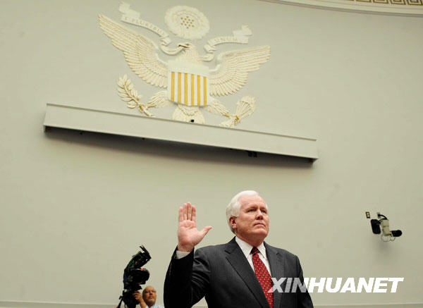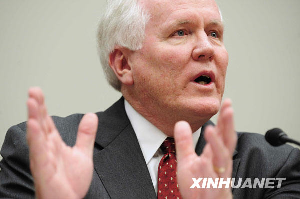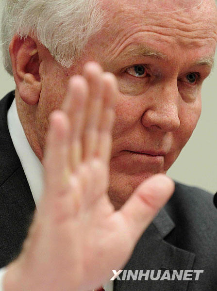 3月18日,美國保險業巨頭美國國際集團(AIG)總裁兼首席執行官愛德華·利迪在位于華盛頓的美國國會山出席國會眾議院金融委員會舉行的聽證會。新華社記者張巖攝