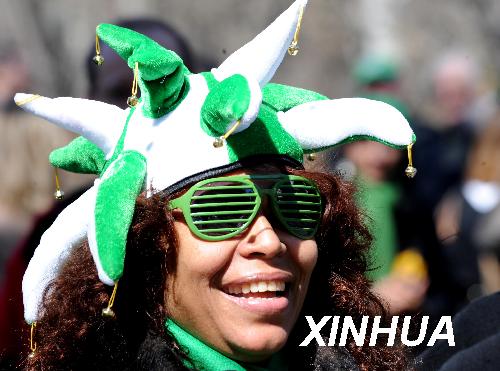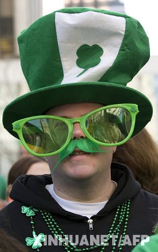 3月17日,在美國紐約,一名男子參加圣帕特里克節游行。當日,紐約舉行盛大游行活動慶祝圣帕特里克節。圣帕特里克節是愛爾蘭人紀念愛爾蘭守護神圣帕特里克的節日,至今已有1500多年歷史,這一節慶傳統被愛爾蘭移民帶入美國。新華社/法新