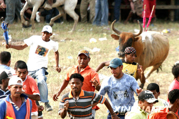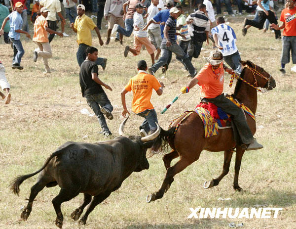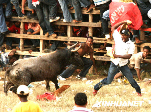 阿爾霍納小鎮(zhèn)舉行的民間斗牛節(jié)是由當?shù)囟放酆谜邊⒓拥囊豁椈顒樱诋數(shù)匾延猩习倌甑臍v史,因其場面驚險刺激,每次斗牛都能吸引成千上萬名觀眾前來觀看。新華社發(fā)(胡安·佩雷斯攝)