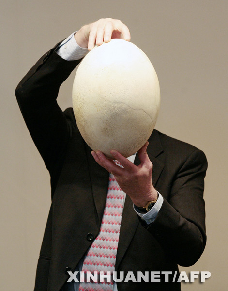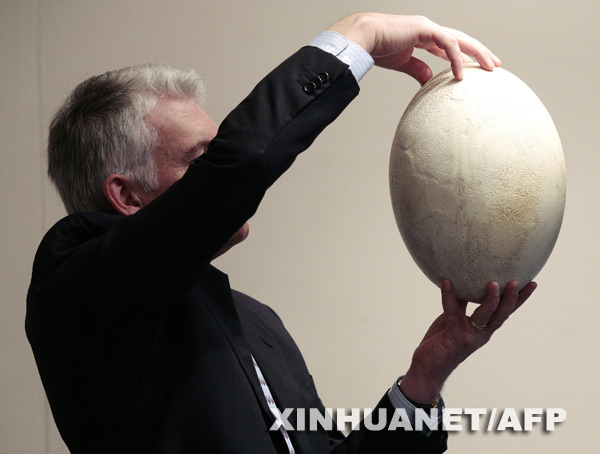 3月25日,一名男子在英國倫敦展示一枚據(jù)稱是“世界上最大的蛋”。這枚由已經(jīng)滅絕的馬達加斯加象鳥在十七世紀產(chǎn)下的蛋,將在當(dāng)天舉行的切爾西古董展上出售,標(biāo)價5000英鎊(約合7340美元)。新華社/法新