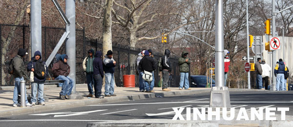 3月25日,大量失業者在美國紐約皇后區街頭等待雇主的雇傭。新華社記者劉欣攝