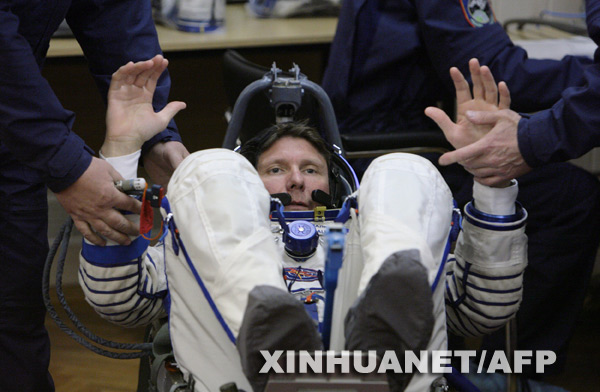 3月26日,在哈薩克斯坦拜科努爾發射場,全球第5名“太空游客”、美國富翁查爾斯·西蒙尼做升空準備。新華社/法新