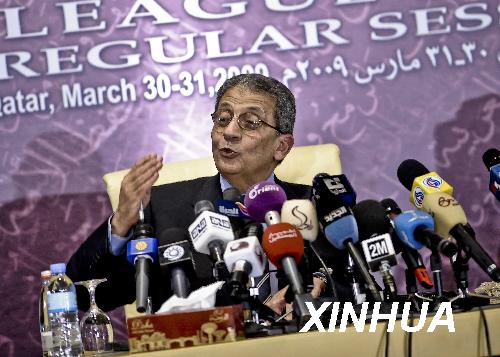 3月28日,阿盟秘書長穆薩在聯合新聞發布會上答記者問。正在多哈召開的阿拉伯國家聯盟(阿盟)首腦會議外長準備會當日呼吁阿拉伯國家實現全面和解。新華社記者張寧攝