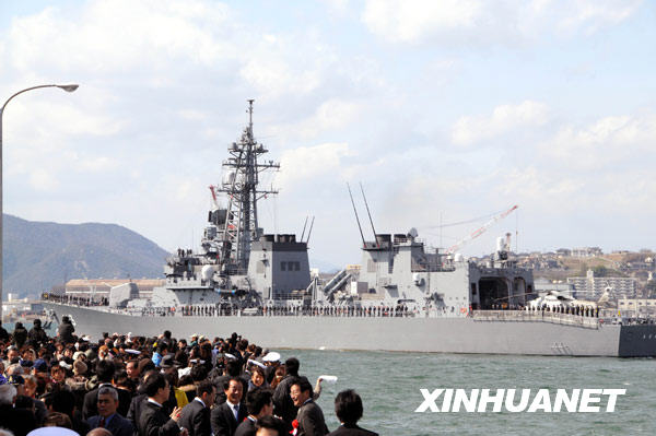 3月14日,“漣”號驅逐艦駛離日本廣島縣的吳基地。日本防衛(wèi)大臣浜田靖一13日發(fā)布命令,啟動“海上警備行動”,向索馬里附近海域派遣海上自衛(wèi)隊艦艇應對海盜威脅。根據(jù)這一命令,駐扎在廣島縣吳基地的“漣”號和“五月雨”號兩艘驅逐艦于14日啟程,預計最早在4月上旬抵達索馬里海域,開始為日本相關船只進行護航。兩艦共有400名乘員,除海上自衛(wèi)隊特種部隊“特別警備隊”隊員外,還包括8名擁有逮捕海盜等司法權限的海上保安廳官員。新華社記者錢錚攝